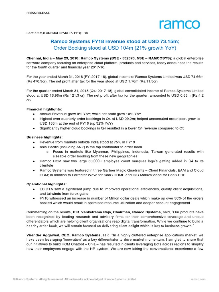 Ramco Press - Get the latest ramco industries ltd.